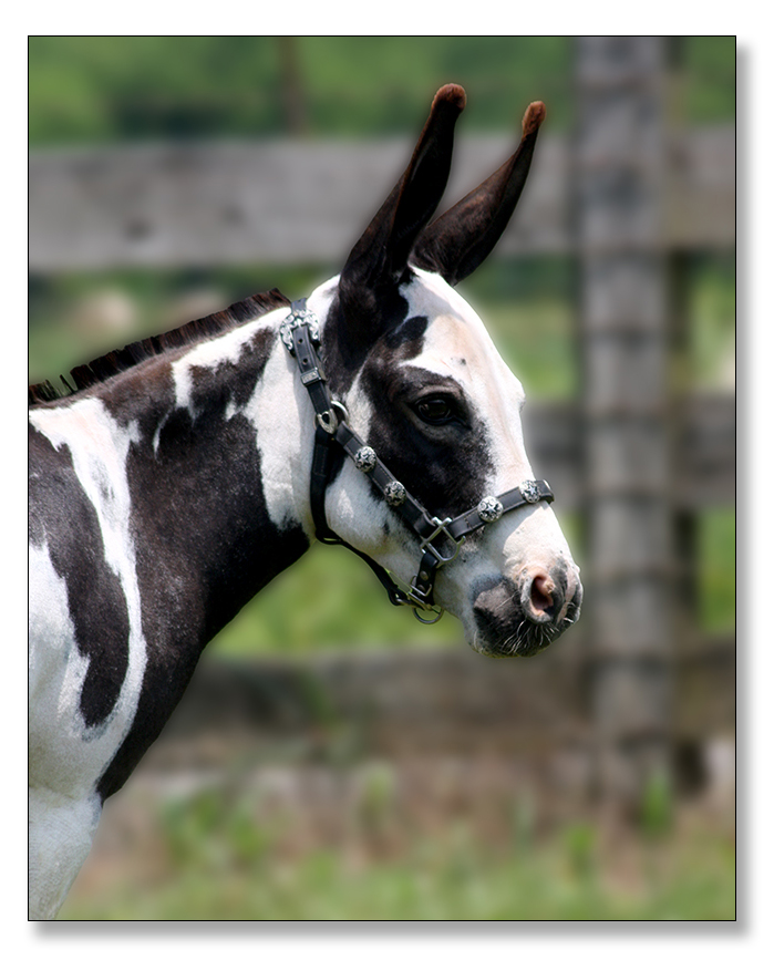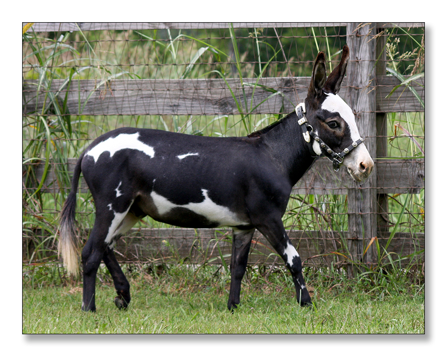 HHAA Kiss on the Lips (Smooch), Black and White Spotted Miniature Donkey Jennet